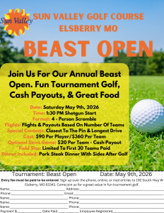 ** Tournament may be cancelled or postponed by Sun Valley due to outside factors, weather or conditions. No returns issued after 7 days before event. Entry fee must be paid to enter. **